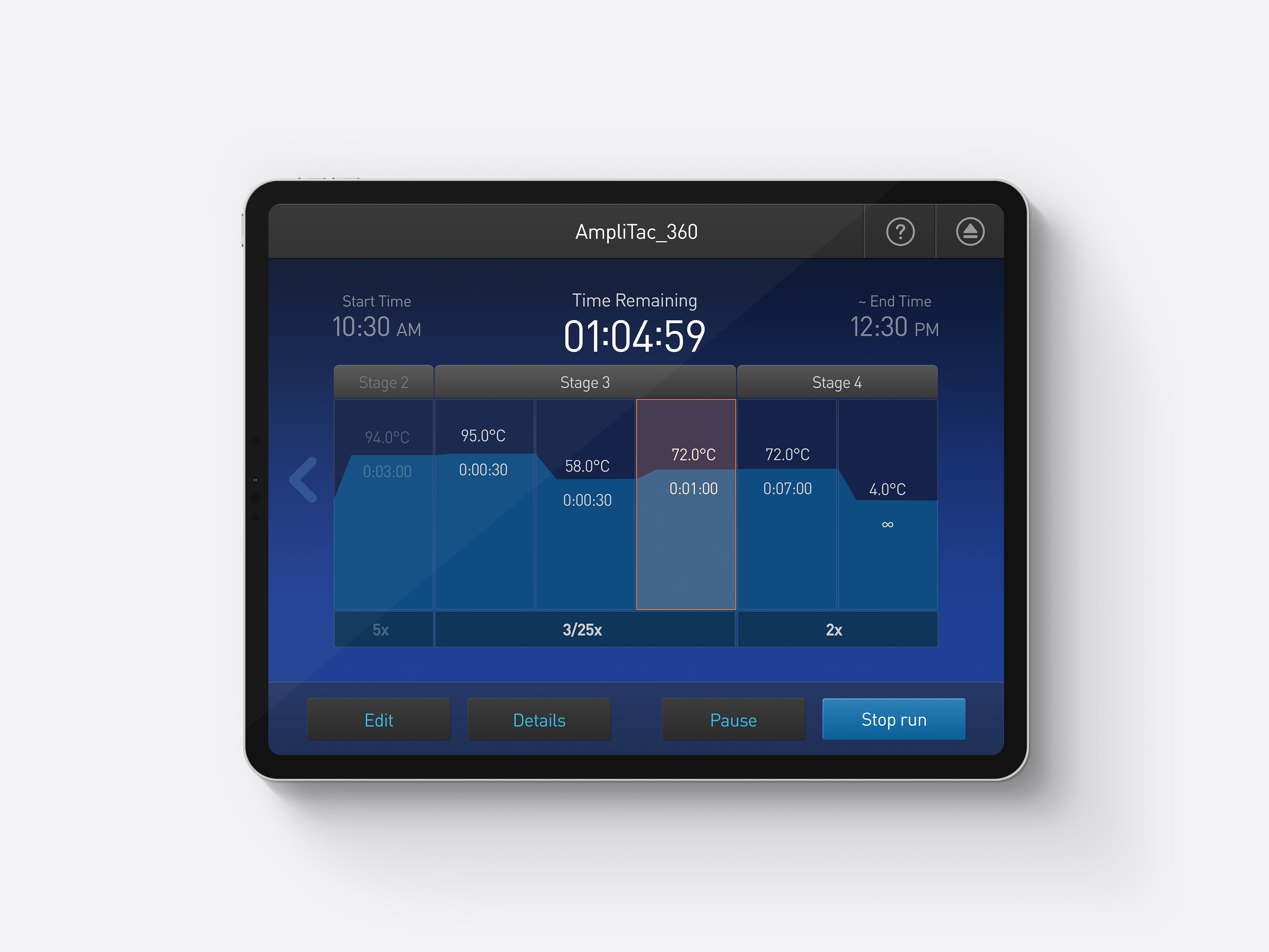 As lead UI designer, my goal was to craft a visual language that felt both iconic and approachable, something that would stand out in the world of scientific instruments while reflecting the precision and trust inherent to the brand. Working side by side with industrial designers and user researchers, we defined the visual and emotional tone of the experience, focusing on how scientists should feel when interacting with our products. Collaborating closely with the UX designer, we reimagined complex workflows through a philosophy of progressive disclosure – where we would reveal information only when needed to keep interfaces clear and intuitive. The first expression of this new design language came to life in the Applied Biosystems' family of PCR Thermal Cyclers.
