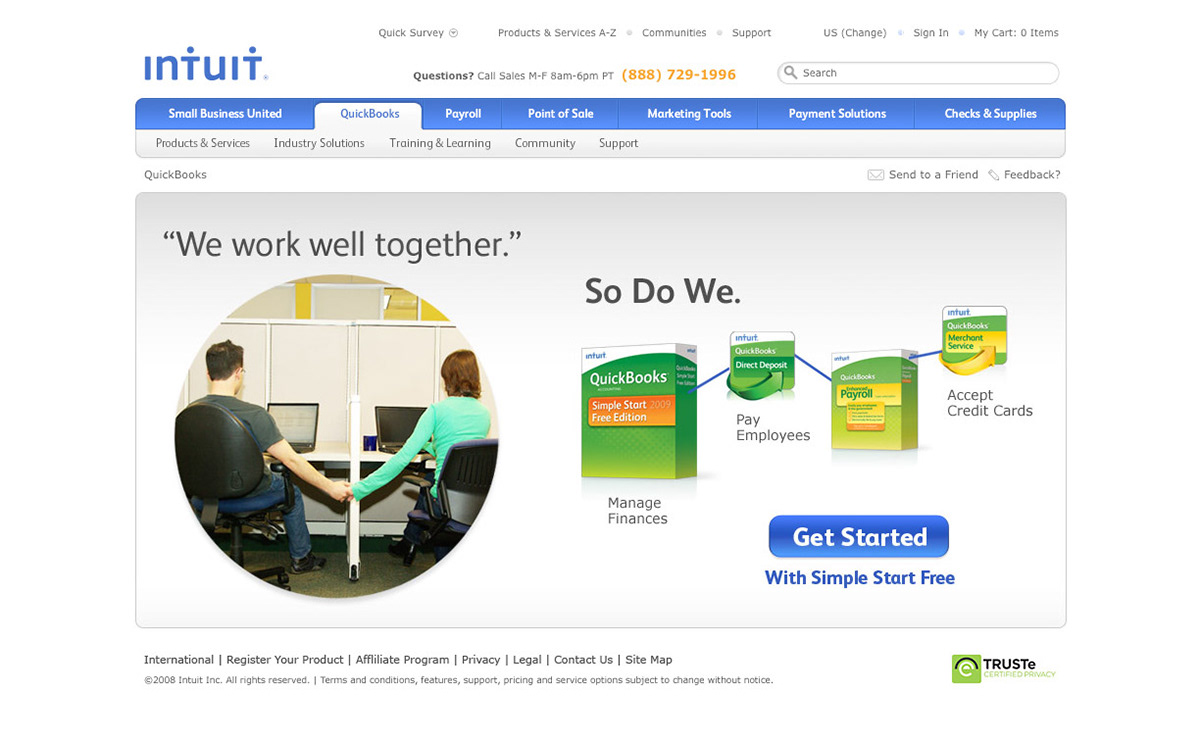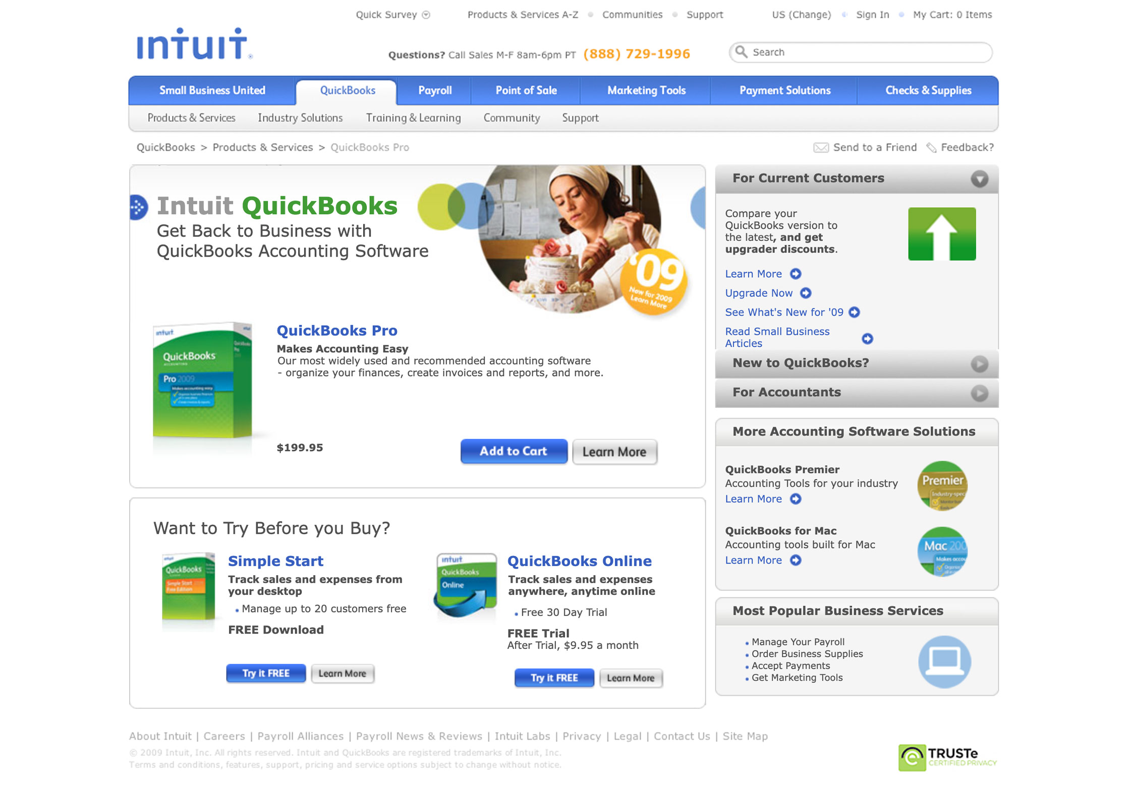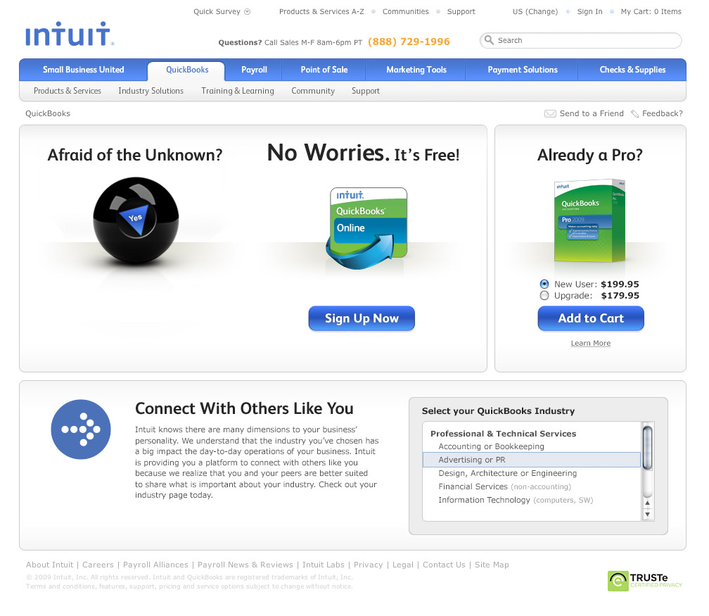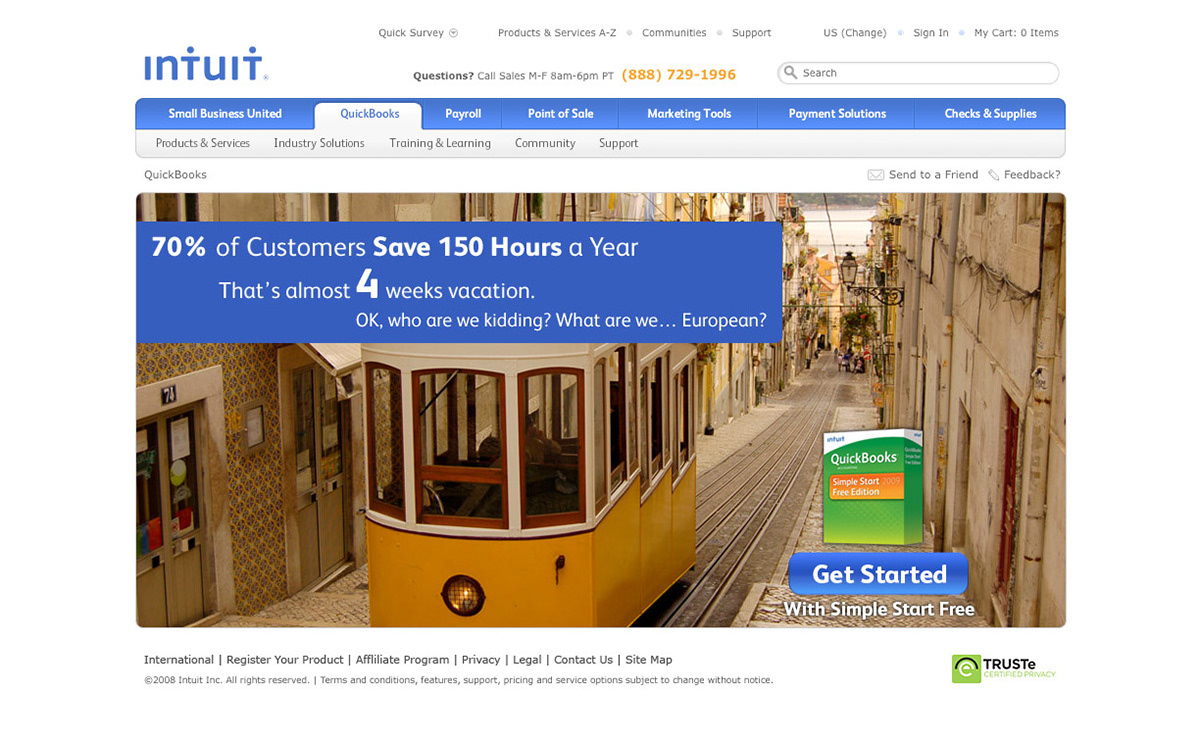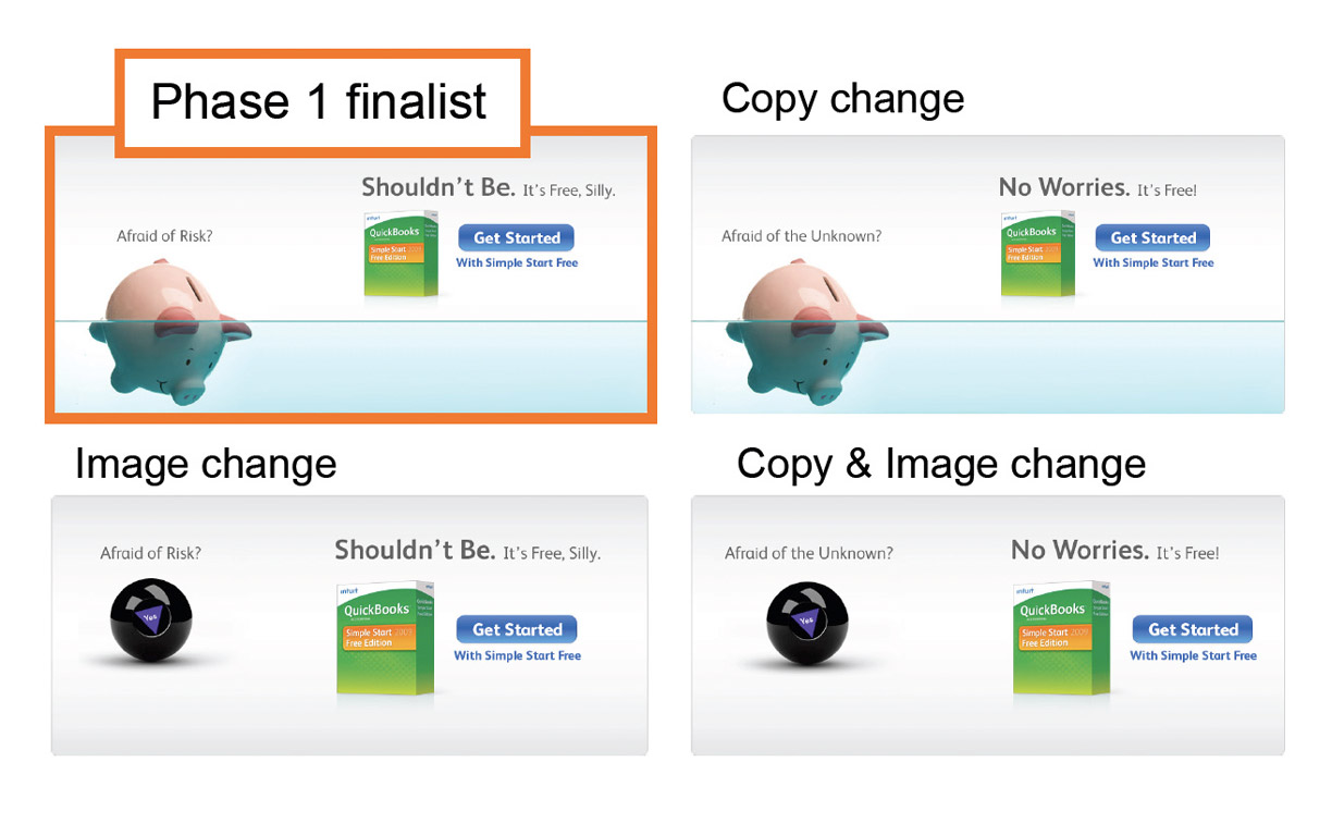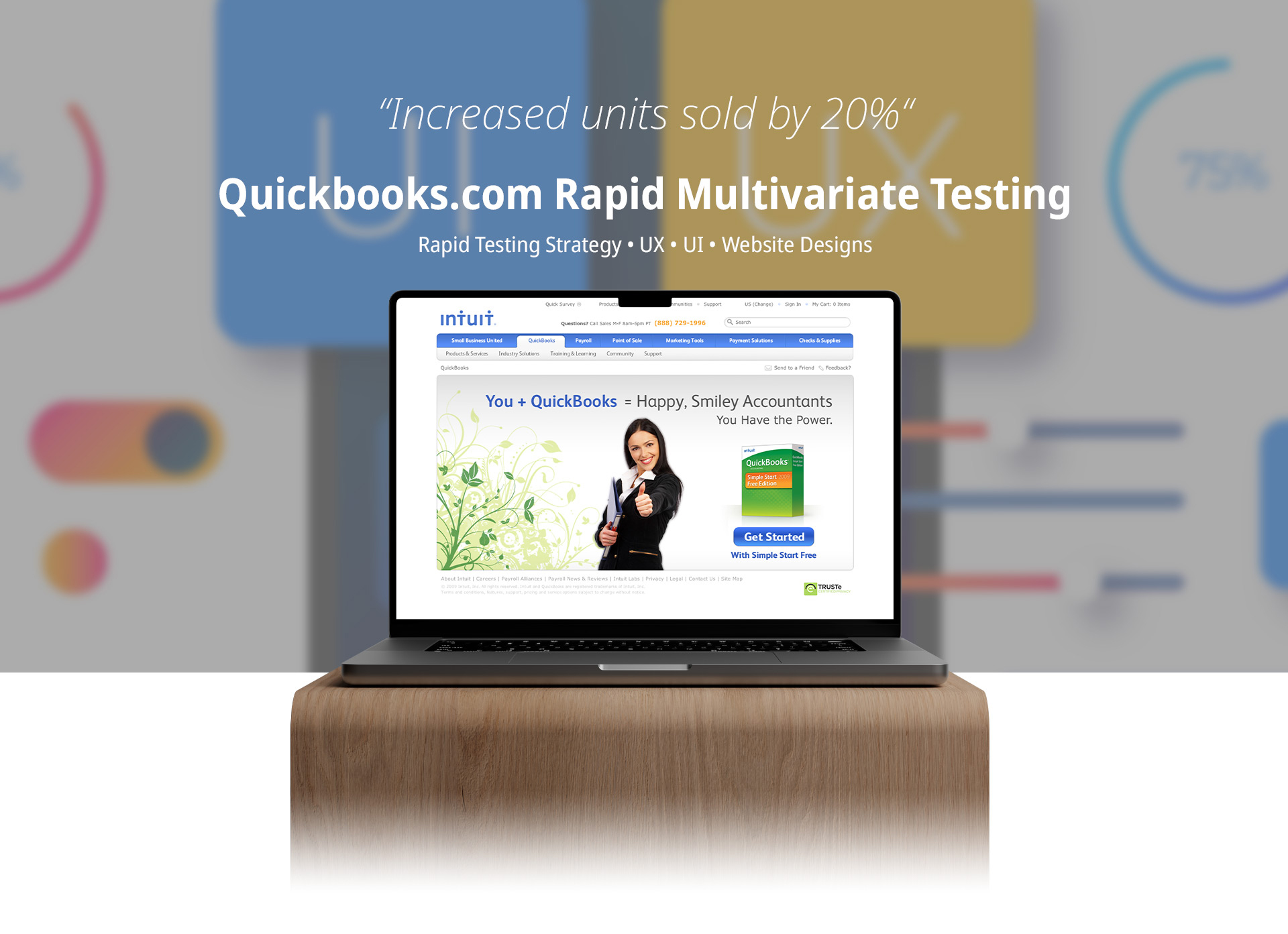 While at Intuit, research and usability became the norm for everything we did. Designers worked hand-in-hand with this team, and QuickBooks.com was no exception. We looked to not just do simple A/B tests to move the bar. We ventured into the world of multivariate testing. Multivariate testing is a form of experimentation wherein multiple elements of a webpage are modified and tested to determine which combination of the page leads to the maximum positive impact on conversion.