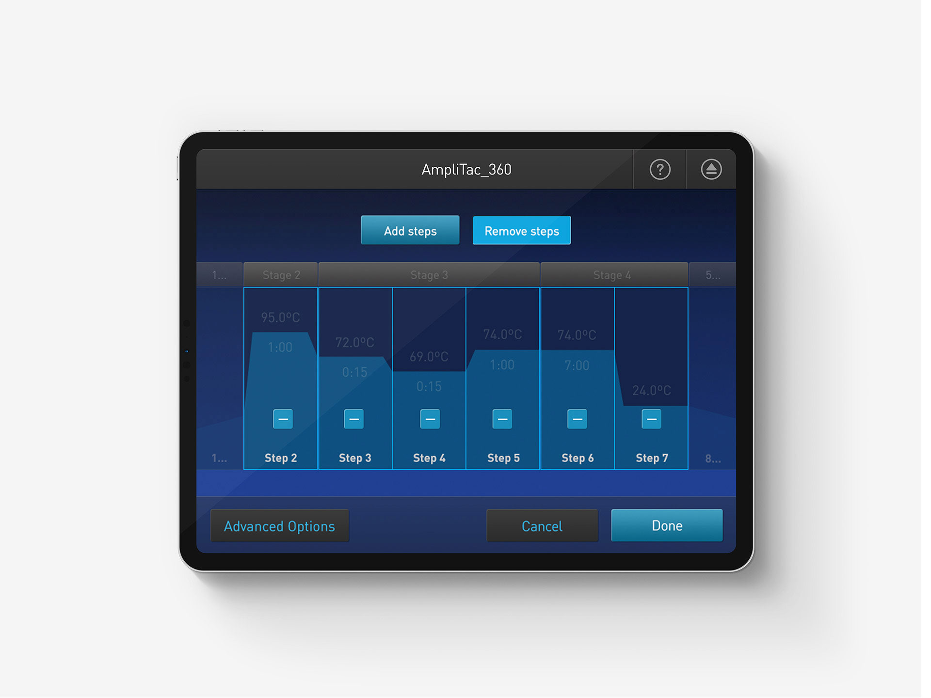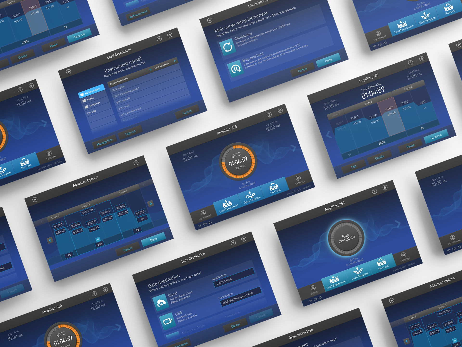 As lead UI designer, my goal was to craft a visual language that felt both iconic and approachable, something that would stand out in the world of scientific instruments while reflecting the precision and trust inherent to the brand. Working side by side with industrial designers and user researchers, we defined the visual and emotional tone of the experience, focusing on how scientists should feel when interacting with our products. Collaborating closely with the UX designer, we reimagined complex workflows through a philosophy of progressive disclosure – where we would reveal information only when needed to keep interfaces clear and intuitive. The first expression of this new design language came to life in the Applied Biosystems' family of PCR Thermal Cyclers.